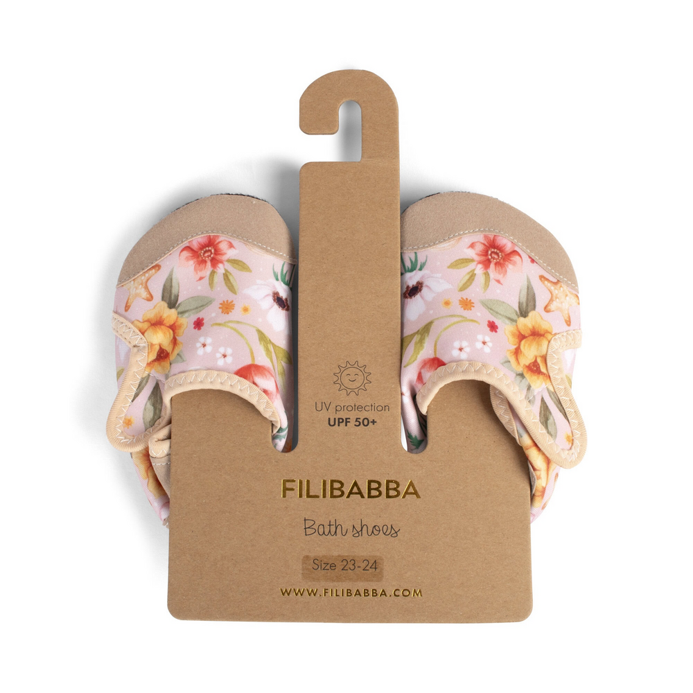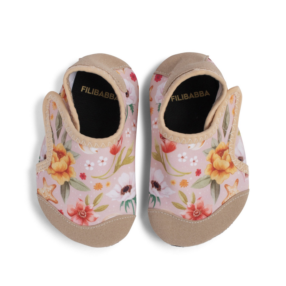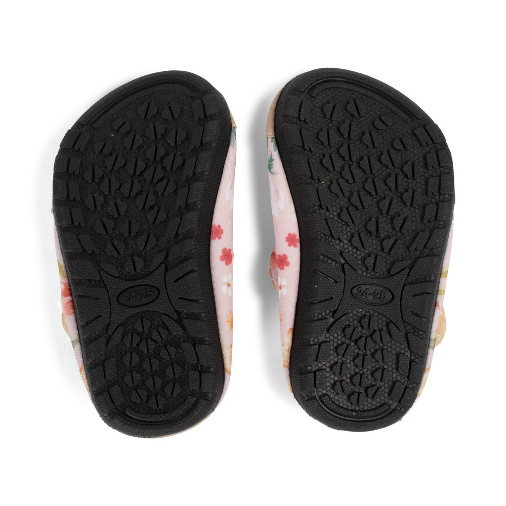 De badschoenen hebben een flexibele rubberen zool en zijn voorzien van extra versteviging bij de teen en hiel, om die kleine voetjes te beschermen tegen ruw terrein. De slimme band aan de bovenkant zorgt voor een stevige pasvorm, zodat kinderen de schoenen gemakkelijk zelf aan kunnen trekken.