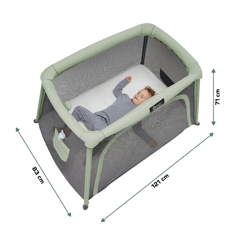 Zodra de baby oud genoeg is om om te rollen (ongeveer 6 maanden), kan hij zijn zoete nachten voortzetten op de grote matras in het onderste gedeelte van het reisbedje. De beschermingsnetten aan de zijkanten kunnen afgeritst worden om het reisbedje om te toveren tot een open speelmat/park.