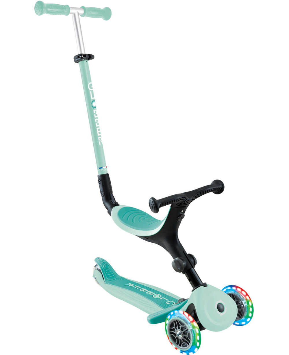 Met deze prachtige Go Up Active step haalt u drie voertuigen in één in huis. Kinderen vanaf 15 maanden kunnen al op de ride-on zitten. Geen hulpstukken meer nodig? Dan transformeert hij naar een loopfiets. En uiteindelijk bouwt u hem om naar een step. Ombouwen is eenvoudig, hiervoor is geen gereedschap nodig. De zitting is verstelbaar (25,5-29 cm), net zoals het stuur (67,5 tot 82,5 cm). De step heeft leuke lampjes in de wielen die oplichten tijden het rijden. Gemaakt van 100% GRS plastic en biologisch afbreekbaar tarwestro. Uitgevoerd in de kleur pistachio.