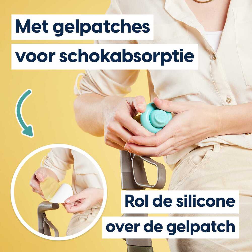 De MyRollerSleeve bevat een gelpatch die de drukpunten in je handen herverdeelt. Het is schokabsorberend, zodat polsen en handen geen pijn doen tijdens wandelingen op ruwe oppervlakken. Personaliseer je rollatorhandvaten en krijg er een betere grip op met deze sleeve!