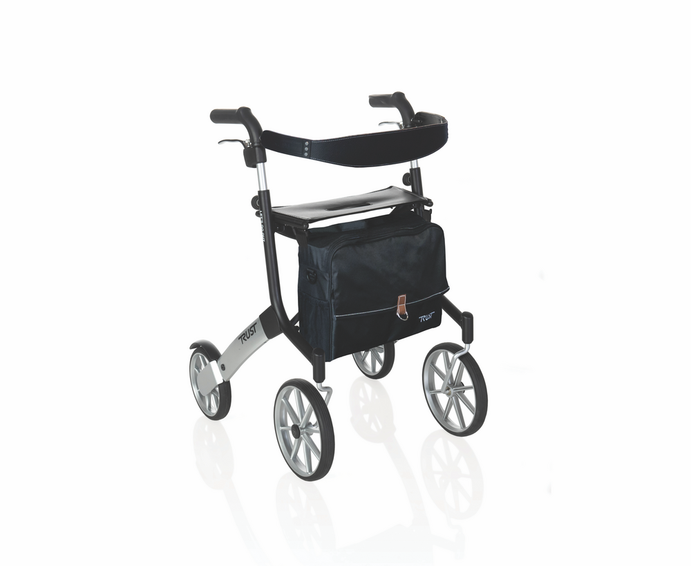 De Let’s Go Out rollator van het merk TrustCare is een zeer lichte rollator. Hij weegt slechts 6,2 kg. Door de vier wielen is hij goed wendbaar. De grote voorwielen maken het mogelijk om gemakkelijk over stoepranden en andere obstakels te rollen. De achterwielen hebben een spatbord ter bescherming tegen vuil. Bovendien absorberen ze trillingen voor een comfortabel gebruik. Hierdoor is de rollator ideaal om buiten te gebruiken. De zachte comfortabele handgrepen zijn in hoogte verstelbaar. Bij de Let’s Go Out Rollator ontvang je standaard een elegant tasje.