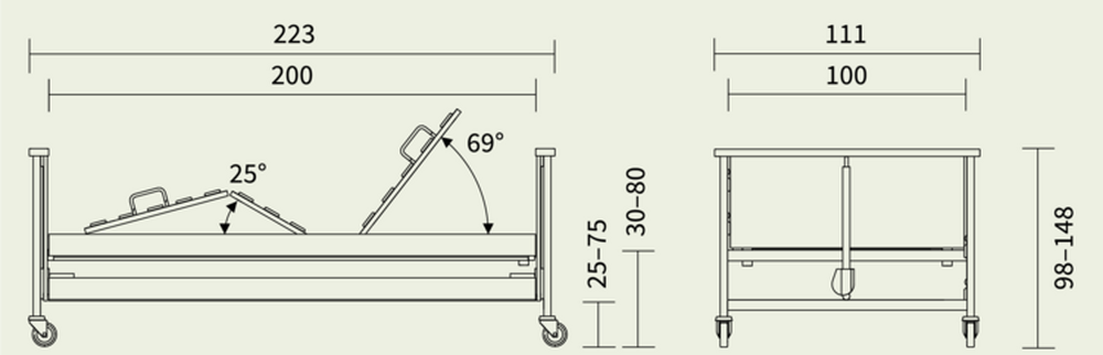 Dit bed biedt alle comfort die je zoekt en met een maximale werklast van 250kg is dit bed ook geschikt voor zwaarlijvige personen. De zeer robuuste bouw van dit verpleegbed garandeert bovendien een lange levensduur.